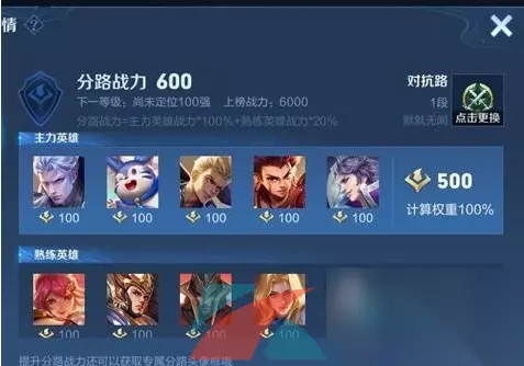 四、英雄调整 1、应注意分流力的计算。在过去,分力的计算就是把战斗力最高的前五名英雄,把战斗力相加,就是分力; 2、而现在加了一个系数,前五名可以100%继承,六到十名是按20%计算的,但这也增加了划分,估计新一季会出现很多100。
