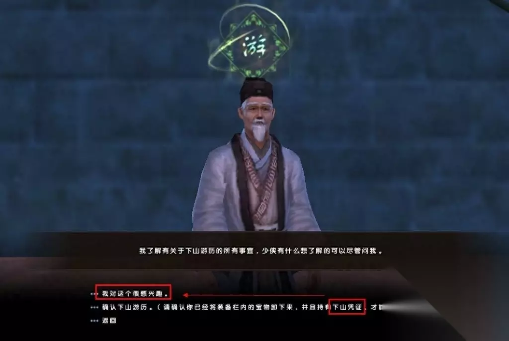 这么说但是下山过后并不是毫无影响的,首先你说修炼的门派内功会统一的被下降到30层,然后所有的武功套路和镇派套路都会调到四层,还有就是不能再加入无门派组织也不能加入其他传统的门之中,但是如果你后悔了你的选择,回顾本门门派时,你所拥有的武功套路都会恢复到原来的等级。只是三十天内再也不能做出下山的选项。另外你的游戏中角色头像旁出现“游”字。