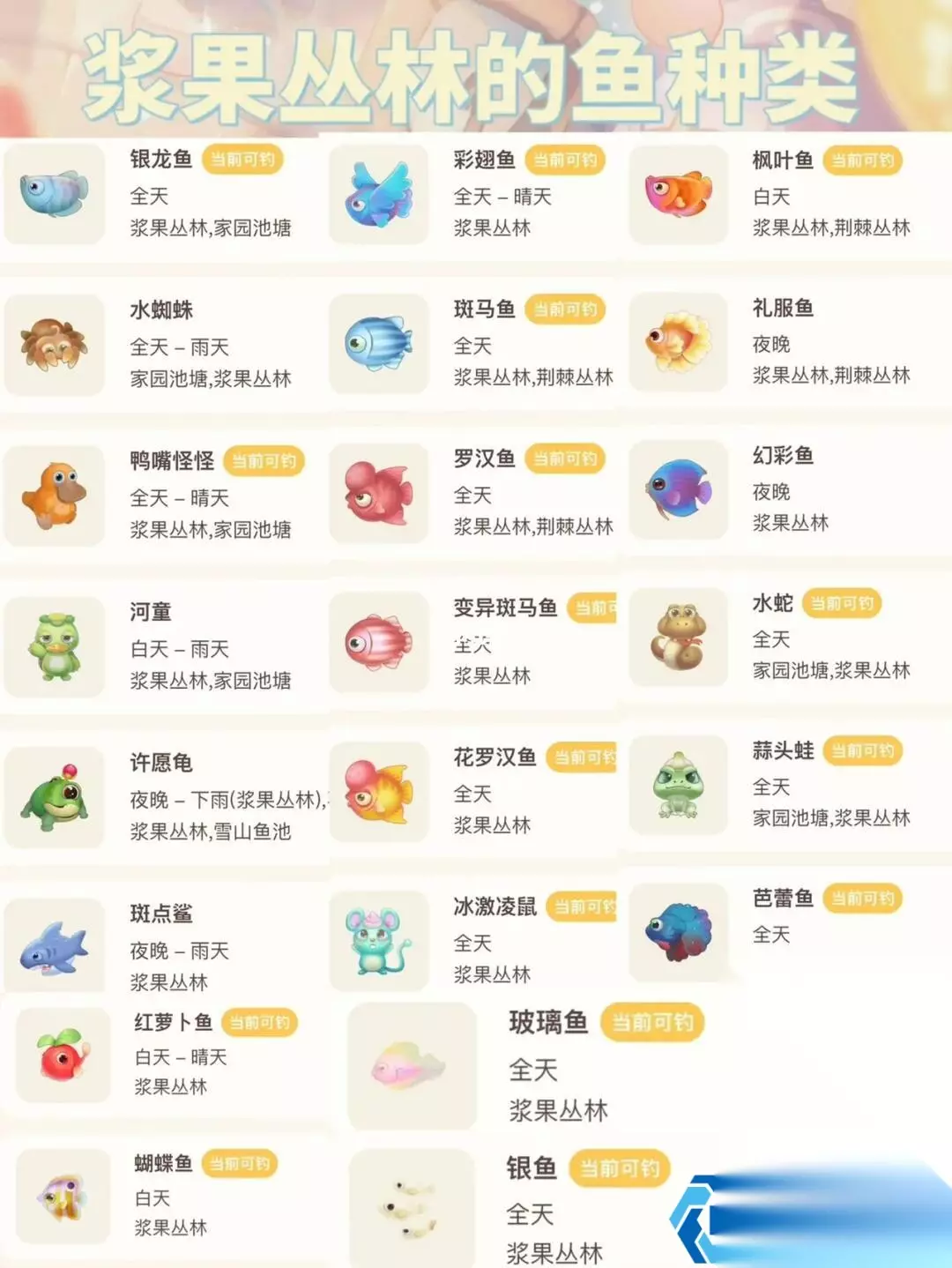 雪山鱼获图鉴:冰原生物的昼夜协奏曲 白昼的闪耀双星(仅限晴天!): 雪鱼:冰川馈赠的银甲武士 白鲸:雪山终极传说!通体如白玉雕琢,只在云开日出时惊鸿一现 风雪或阴天绝迹!晴空下抛竿是唯一机会 暗夜的神秘访客: 抱抱熊:毛茸茸的夜行精灵!与雪鱼形成完美昼夜轮换 速钓秘技: 白昼猛攻雪鱼/白鲸 → 夜晚转战抱抱熊 三天高强度垂钓可稳定收服雪鱼+抱抱熊 白鲸?全凭天命所归! 雪山常驻军团(高出现率): 冰川红虾(橘红如熔岩) 冰川虾(剔透如冰晶) 肥头鲳(圆润呆萌) 鲶鱼(灰褐隐士) 紫晶鲶鱼:游动的水晶艺术品!收藏党必入,水族箱中的幽幻主角 全境鱼种勘探:四大陆的游鳞宝藏 阳光牧场: 银刀般的带鱼 鳞片折射星芒的星空鱼 浆果丛林: 姿态优雅的芭蕾鱼 暗流中疾行的水蛇 拉雅雪山: 金鳞耀日的锦鲤 尖齿利吻的狗鱼 终极渔夫守则 天时即王道: 雪山晴昼 → 锁定白鲸/雪鱼 雪原月夜 → 抱抱熊专场 阴雪天气 → 休竿养精蓄锐! 鱼饵战略: 中级鱼饵海量囤积!商店搬空不手软 高级鱼饵留给白鲸、紫晶鲶等传奇目标 低级饵仅作填充弹药 收藏家视野: 紫晶鲶鱼不仅是财富象征,更是水族箱灵魂展品 白鲸钓获即毕业证书,雪山垂钓者最高勋章 当鱼线在寒风中绷紧,当冰层下的阴影吞入诱饵——此刻你不仅是渔夫,更是与自然法则对弈的诗人。握紧你的钓竿,看准那道转瞬即逝的绿环,在这片银白大陆书写属于你的冰钓传奇!
