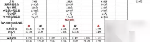 lol小蜜蜂宝典每天多少局可以肝满 对于79元宝典玩家来说:每天打匹配的话需要赢8.3局才行,输的话需要16.7局,大乱斗赢的话12.5局,输需要25局; 对于188元宝典玩家来说:每天打匹配的话需要赢4.7局才行,输的话需要8.6局,大乱斗赢的话7.1局,输需要14.3局; 对于639元宝典玩家来说:每天打匹配的话需要赢2.2局才行,输的话需要4.5局,大乱斗赢的话3.4局,输需要6.8局; 对于939元宝典玩家来说:不用肝直接就是满级了。
