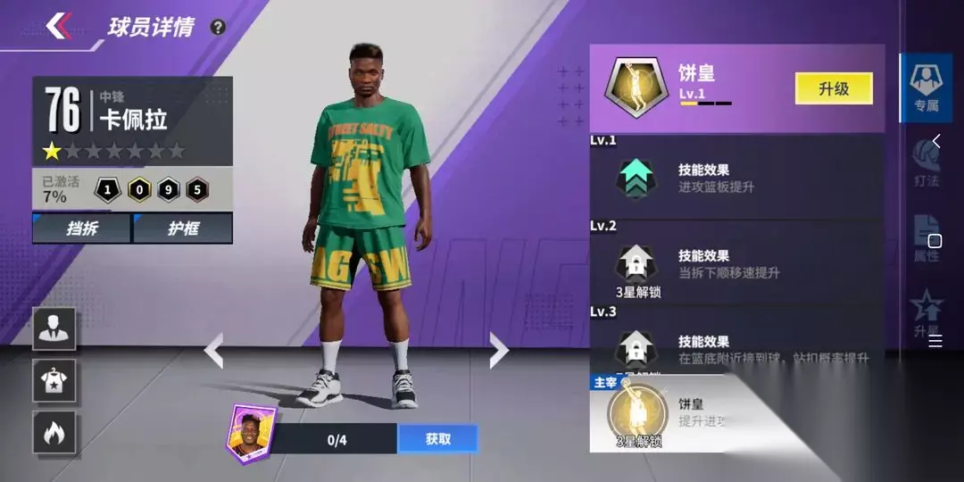4、卡佩拉 功能性更偏向于得分,主要还是靠挡拆下顺和进攻篮板后的二次进攻得分,中低端局还能作为偷分手,高端局来讲,整体的技能模组还是略微有点难登大雅之堂 不建议培养,上有金大帝,戈贝尔,下有蓝大帝,培养性价比不高,真爱党除外