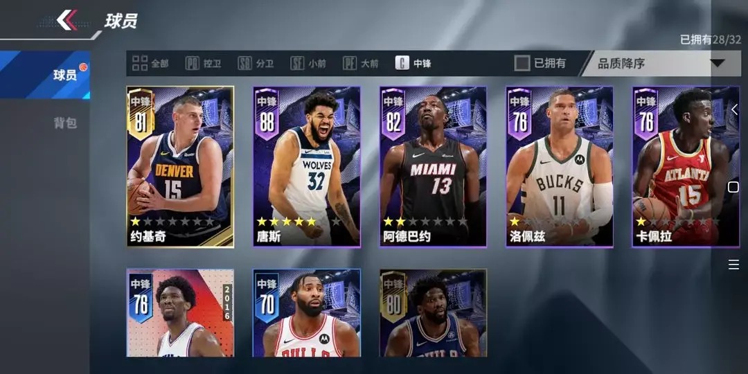 热血美职篮紫卡中锋球员推荐 一、省流总结 唐斯拥有更强的空间和三分能力 热巴拥有更强的篮板与补防能力 大洛拥有更强的盖帽能力和不错的空间三分能力 卡佩拉的这个这个内线也勉强还可以。尤其当前扣将领先的版本,唐斯和大洛的地位更突显,热巴是蒙尘的明珠,潜力无限,卡佩拉真的非真爱勿入