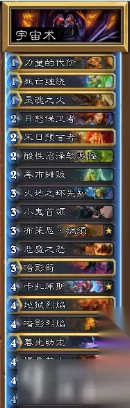炉石传说加基森最强术士卡组怎么搭配?炉石传说暗金教宇宙术怎么使用?炉石传说暗金教宇宙术卡组推荐。下面就和小编一起来看看吧。 今天为大家来介绍一套宇宙术卡组!虽然没有青玉德和海盗战吹的响,但是宇宙术卡组在这个版本中当之无愧的是几个最强卡组之一!本身随从质量高,过牌快,AOE能力超强!苟得住海盗战,抢的死青玉德,而且本身还有雷诺的一口超级大奶~强无敌! 宇宙术卡组
