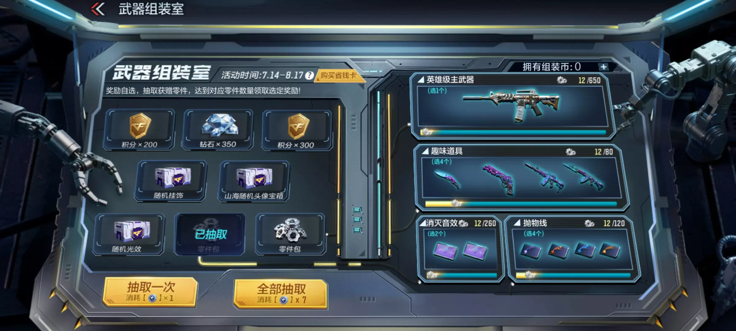 这一次,选择权交给你!武器组装室惊喜开启,全新活动形式助你拿下返场的游骑兵主武器系列、竞界荣光主武器。在开始抽奖前即可锁定心仪奖励,奖池中不仅有热门武器皮肤,更有海量稀有万化道具。而在获取这些的同时,还可以获取到大量钻石和赏金令积分卡,喜欢的小伙伴可以尝试一下。