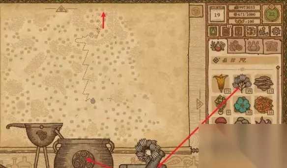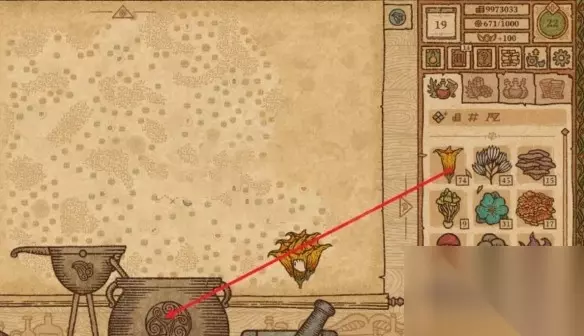 2 、重复接下来的动作4次,拖动1个风之花到研钵中研磨,然后放入坩埚中,使药剂瓶的移动路线向上。 3 、拖动1个硫磺架到研钵中研磨,然后放入坩埚中,使药剂瓶的移动路线向左上方。 4 、拖动1个水之花到研钵中研磨,然后放入坩埚中,使药剂瓶的移动路线向右。 5 、拖动1个风之花直接放入坩埚中,使药剂瓶的移动路线向上。先使移动路线走一半,然后再次拖动1个风之花到研钵中研磨,然后放入坩埚中,使药剂瓶的移动路线向上,移动整个路线。