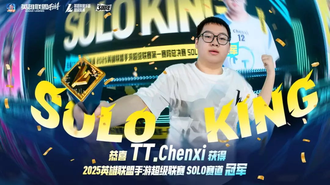 恭喜TT.Chenxi摘得《英雄联盟手游》超级联赛SOLO赛道桂冠!SOLO天花板实至名归!