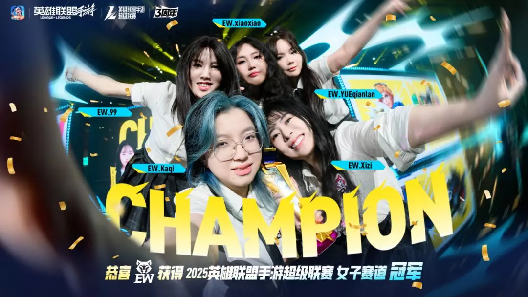 恭喜EW战队获得《英雄联盟手游》3周年庆典暨超级联赛第一赛段女子赛总决赛冠军!