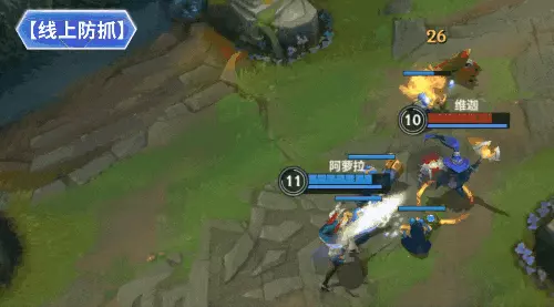 首先,阿萝拉换血最重要的是打出三环和电击,我们可以先走A假装补兵,使用Q(1)技能挂个印记,通过平A和E(3)技能打出符文:电击,再用平A和二段Q(1)技能进行一波消耗。