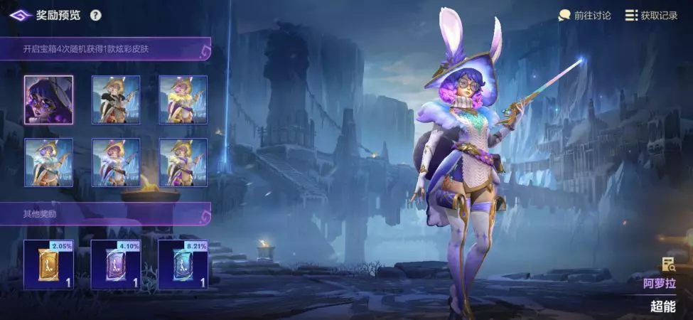 奖励:新英雄双界灵兔 阿萝拉,传奇图集四星卡包(紫),博识秘能*200等好礼