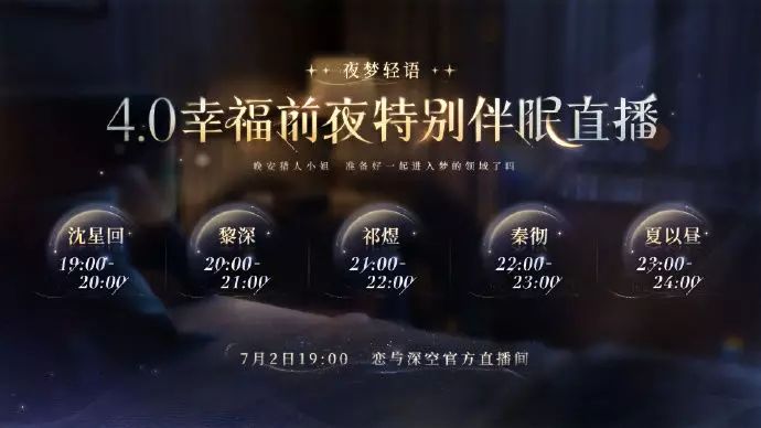7月2日19:00更有「夜梦轻语」4.0幸福前夜特别伴眠直播,一同沉入美好的梦境中,相伴迎来特别的这一天。