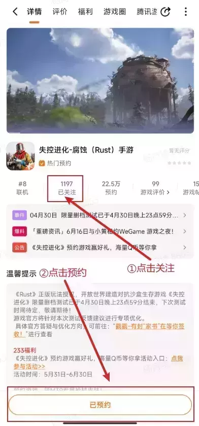 步骤1:预约、关注《失控进化》并截图