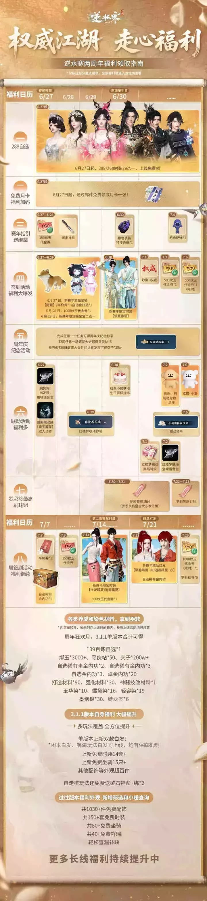 2)登录领取玄益凝丹·沙与海之歌、新赛年玉石、乌炎淬金·沧澜破浪等养成材料奖励。