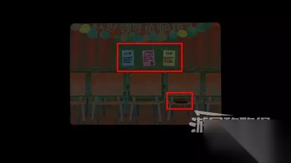 随后视角转动看向演出的观众席,对墙上张贴的告示和座位上的钱包进行调查即可。