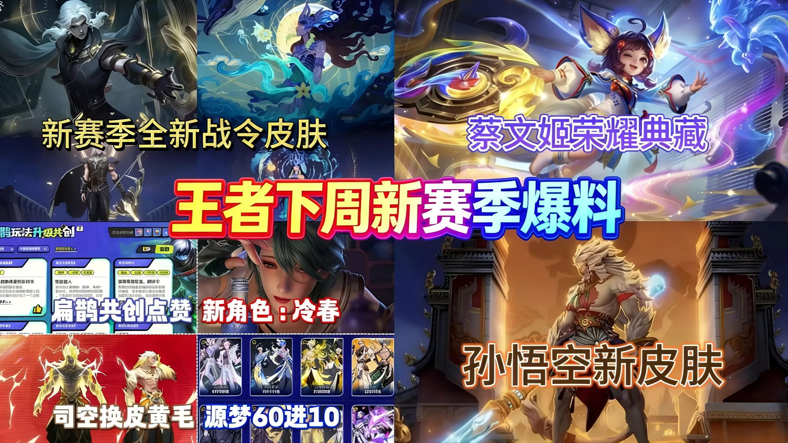 王者荣耀下周皮肤+五大福利活动汇总!策划提前爆料!蔡文姬荣耀典藏下周上线!全新战令皮肤来袭!孙悟空也喜迎新皮肤!这份官方活动攻略记得存好!