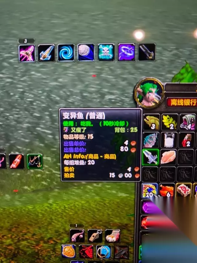 我们要钓的就是这个:变异鱼。烹饪+甜香料=美味风蛇。 变异鱼AH价格2G左右还是不错的,不过我并不打算卖,送朋友他也挺香啊。美味风蛇图纸60G左右,打不出来的同学还是去AH买吧,不然掉落率分分钟让你怀疑人生。 贫瘠之地一共有三处小湖,都有几率钓到变异鱼,个人感觉40%左右几率,可以一直钓到225,一小时大概4-5组的样子,产量还是挺可观的。 鱼点是必出变异鱼,复产一些箱子,朗姆酒之类。刷新时间10-30分钟不等,没有仔细研究。