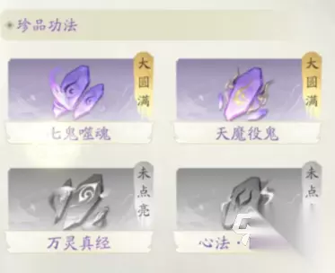 之后是魔修的珍品技能,也就是中级功法,首先是第一个功法七鬼噬魂,这个功法可以召唤多只幽魂攻击敌人,并且攻击还会附带业火效果,可以对敌人造成120的攻击伤害,以及40%的业火伤害;第二个功法叫做天魔役鬼,该功法会凝聚魔拳攻击敌人,被攻击到的敌人会受到220%的攻击伤害以及50%的业火伤害;第三个功法叫万灵真经,这个功法可以召唤多只幽魂攻击敌人,会对敌人造成240%攻击力的伤害;最后一个功法是一个无攻击效果的心法,这个功法叫阴火阵,可以提升业火的伤害。