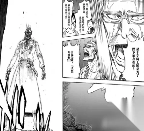 友哈巴赫和他手下的星十字团 久保花了不少笔墨来塑造这些新人物,又安排了过往角色来和他们捉对厮杀。但画着画着,他本人仿佛突然失去了耐心,让友哈巴赫唐突发动了名为“圣别”的技能,直接献祭了自己绝大部分手下(他们中的许多仍身处未竟的对局中),强行让故事进入“最终战的最终战”。