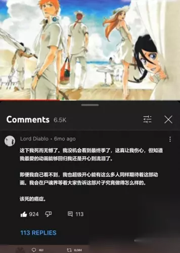 邮戳和信封几乎是当时唯一的线索 在昨天《千年血战篇》的第一集播出之后,除了对于动画本身的讨论,推特上最热门的相关话题是半年前一位《死神》粉丝在动画宣传片评论区里写的留言。 那名粉丝感慨说自己悲喜交加,为自己有生之年能看到《死神》重回屏幕而高兴到流泪,遗憾的则是他罹患癌症,恐怕没机会真的看到会动的《千年血战篇》了。他说自己会在尸魂界等着大家来告诉他这动画有多精彩。