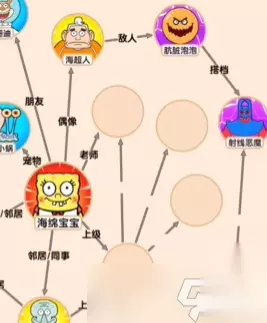 文字找茬大师游戏中,玩家需要在限定时间内,找到解谜的方法,下文小编带来了海绵关系图这一关的答案,快来看看吧 抖音文字找茬大师海绵关系图怎么通关 海绵关系图 通关目标:将人物全部归位 1、海绵的三个朋友与邻居是珊迪,派大星和章鱼哥,老板是蟹老板,偶像是海超人,宠物是小窝。