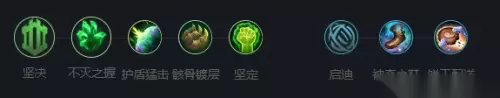 4、符文推荐:【坚决+不灭之握+护盾猛击+骸骨镀层+坚定+启迪+神奇之鞋+饼干配送】