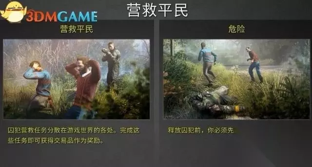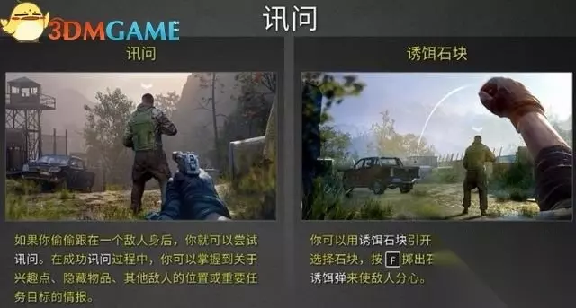 接下来进行索降,往前找到一名雇佣兵,抄到他的身后,按E键进行审讯,得到有用的情报。