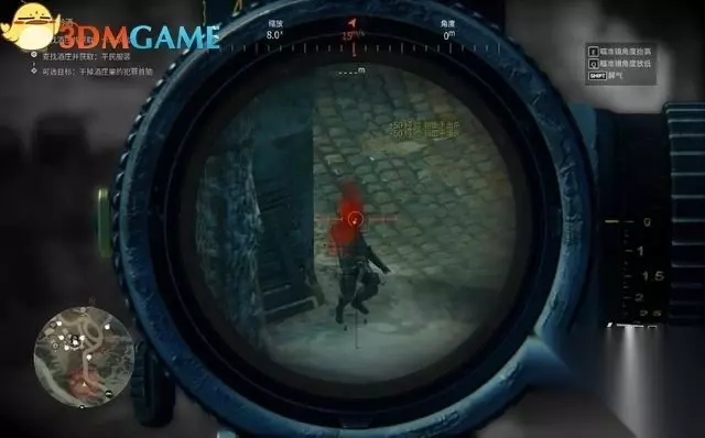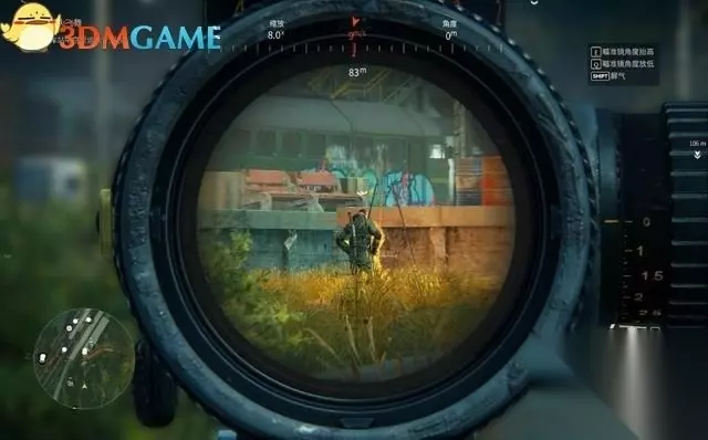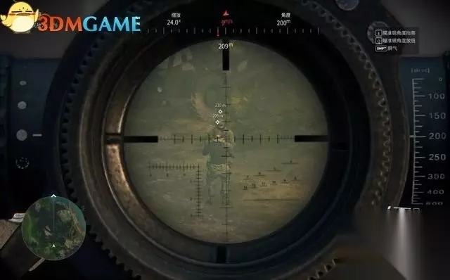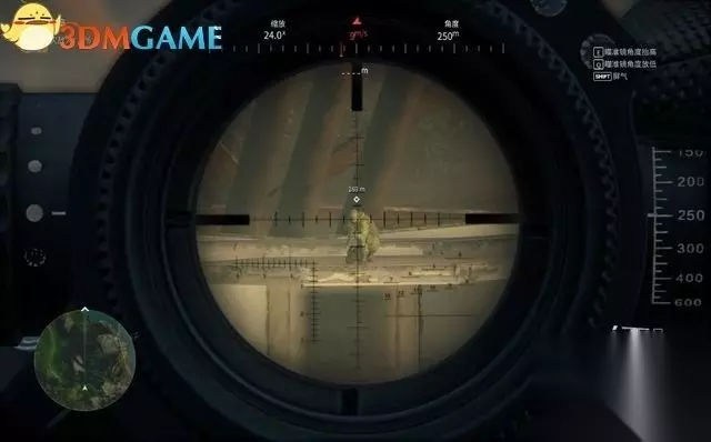 接下来要依次解决掉6名敌人。 第1名敌人在高处平台,进入瞄准镜模式,用鼠标的滑轮可缩放视角。 再依照与敌人间的距离,将瞄准镜调查适合的角度。当前需要调整到250米。 然后再瞄准敌人的头部射击,一弹毙命! 序幕(3)