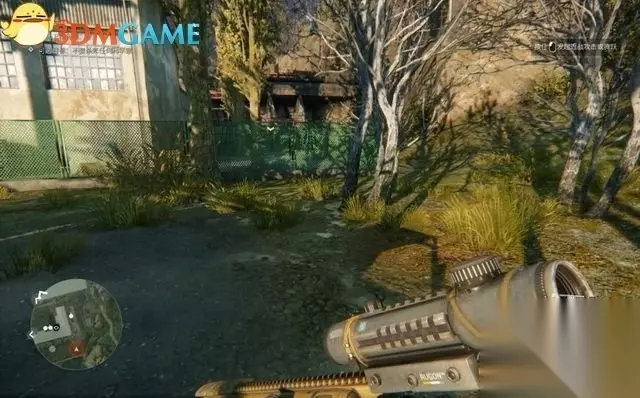 在临近加油站的地方,有一座敌兵的小型营地。 你需要清理掉营地里的敌人,才能穿过营地抵达加油站外围。 因此,先爬到如图的这座岗楼上,瞭望观察营地。
