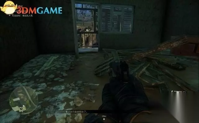 赶到任务地点,先用无人机扫描一下。在楼前有大量的敌兵,目标呆在一幢大楼的5层房间里。 你需要到对面的大楼找到一个合适的狙击点,并拿回一只坠毁的无人机(可选目标)。