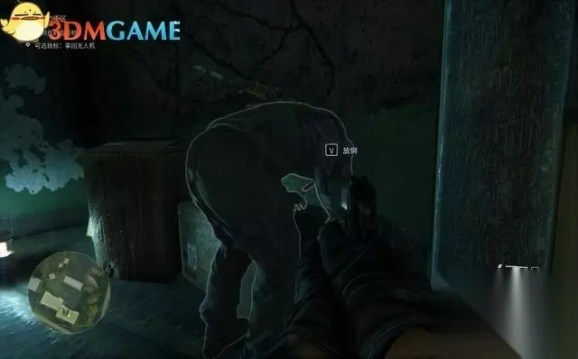 往前追踪到两名敌人,主角负责解决右边这个。 这里学习一下潜行暗杀,下蹲潜行至敌人的背后,按V键解决掉他。 在杀敌后,你还可以搜刮战利品。或是搬动尸体,藏到不易被发现的地方。