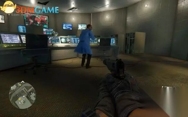 进入卫星天线的控制室,里面有两名科学家。 这里有个可选项目:就是不杀死一名科学家。这就意味着,你不能再潜行暗杀,而是明火执仗的进行屠杀。 你可以用手枪清理掉这些科学家,然后操作控制台,移动第一座卫星天线。