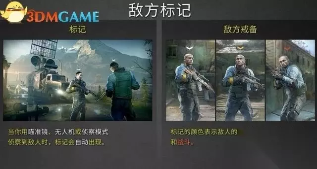 接下来释放无人机,除了标记加油站里的敌人,还要侦察各个关键地点:迫击炮、狙击兵等。最后找到科瓦奇的位置。