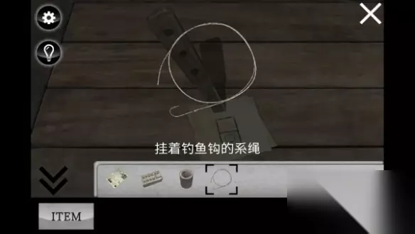 3、点击桌子可获得望远镜和系绳。 4、组合系绳和鱼钩,得到挂着钓鱼钩的系绳。