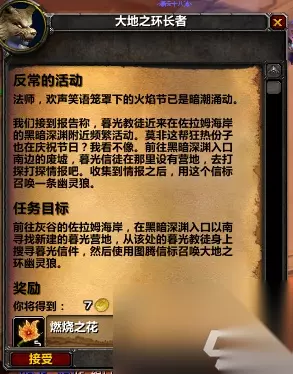 4. 异常活动 本次节日活动的重头戏是奴隶围栏节日boss召唤的起始任务,前往灰谷佐拉姆海岸,在黑暗深渊入口附近的暮光营地寻找暮光教徒寄来的暮光信。