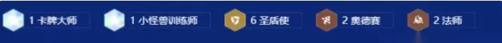 羁绊组成 1卡牌大师、1小怪兽训练师、6圣盾使、2奥德赛、2法师