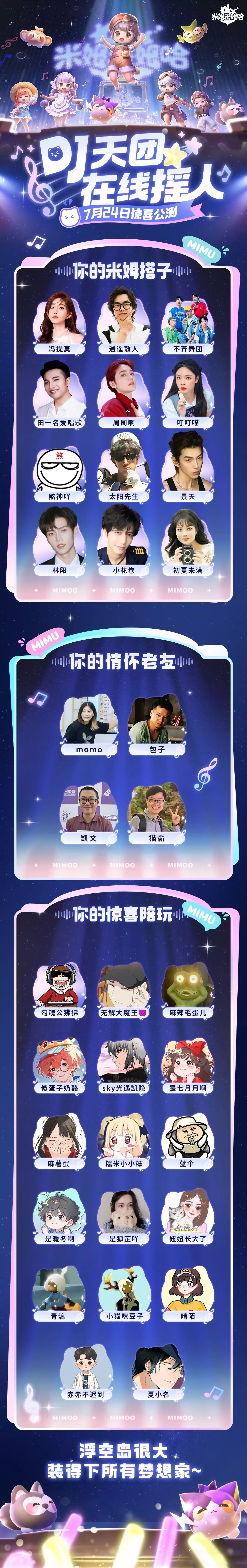 🎵「米姆DJ天团」已就位,就等你加入,7月24日前往浮空岛开启一场“精神超前”的云端蹦迪派对: