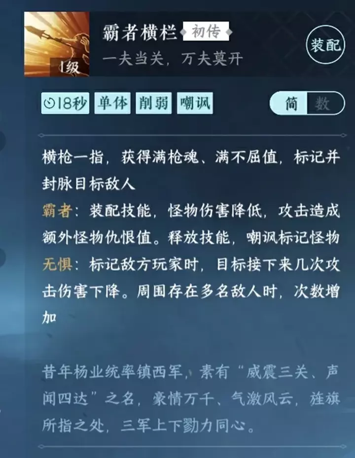 血河不会在意敌人的数量、力量,不怕强者不惧权威。即便陷入苦战,血河也会用手里的长枪,脚下的铁骑,凭借百折不摧的意志力,尝试杀出一条血路,直至枪缨被鲜血浸染。这便是血河流派代代传承的江湖意志。
