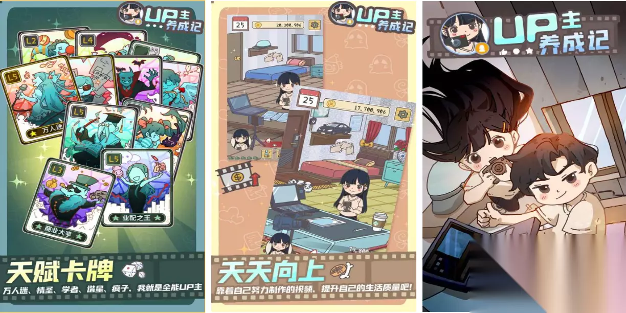神兽养成记是拥有山海经主题背景的特殊养成游戏,全面的养成机制和洪荒的背景设定都是亮点,玩家首先要在洪荒时代中收集各种神兽然后培养,操作理念简单上手也有着超级多的养成任务,神兽的立绘呈现都十分精致给人栩栩如生的感觉,沉浸感拉满的养成体验更让养成爱好者心驰神往,你也尝试来到山海经世界中养成异兽吧。 高速下载 普通下载 优先233乐园APP下载 6、《UP主养成记》