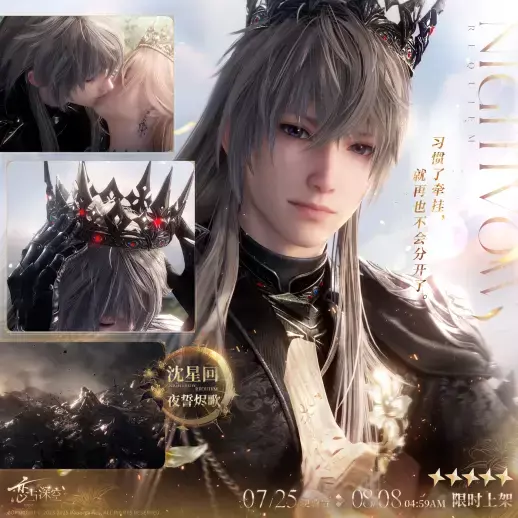 1.活动期间,限定五星日冕套装思念「沈星回·夜誓迷月」、「沈星回·夜誓烬歌」许愿概率限时大幅提升,两张限定思念占五星获取几率的50%。