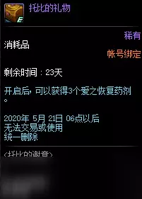 登录后获得托比的礼物一个