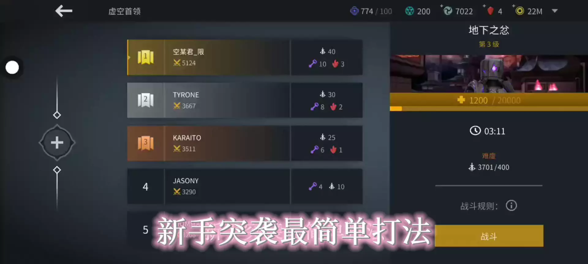 新手突袭最简单打法