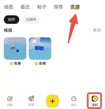 页面顶部点击进入“我的”页面,选择当前账号已发布且想要设置为付费使用的模组内容(需要通过审核并保持都可见状态)