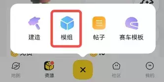 方式①→点击派对底部“+”号(选定后变为“x”号)并选择【模组】