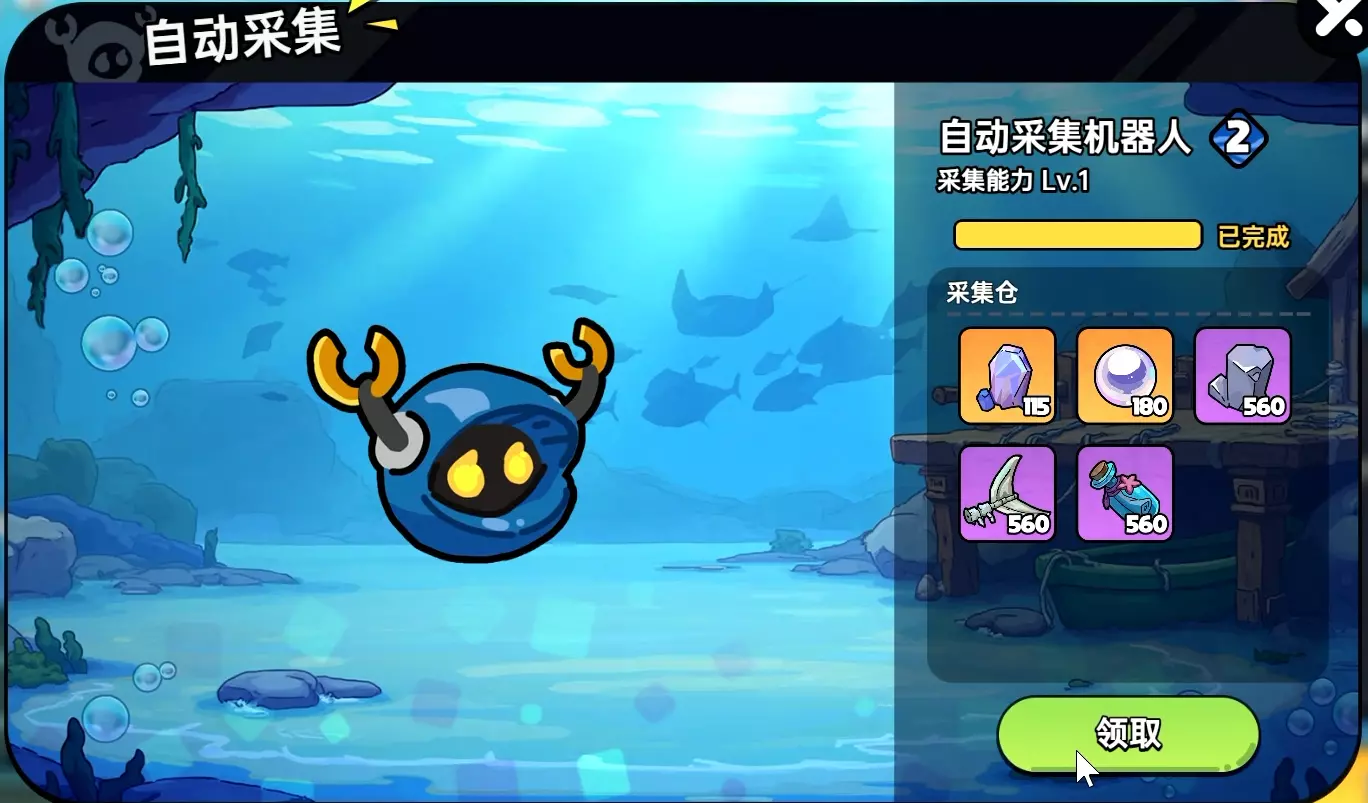 圣巡艇达到一定等级后将解锁【采集机器人】,勇士们可通过派遣采集机器人自动获取深海采集物,在一定程度上解放双手~