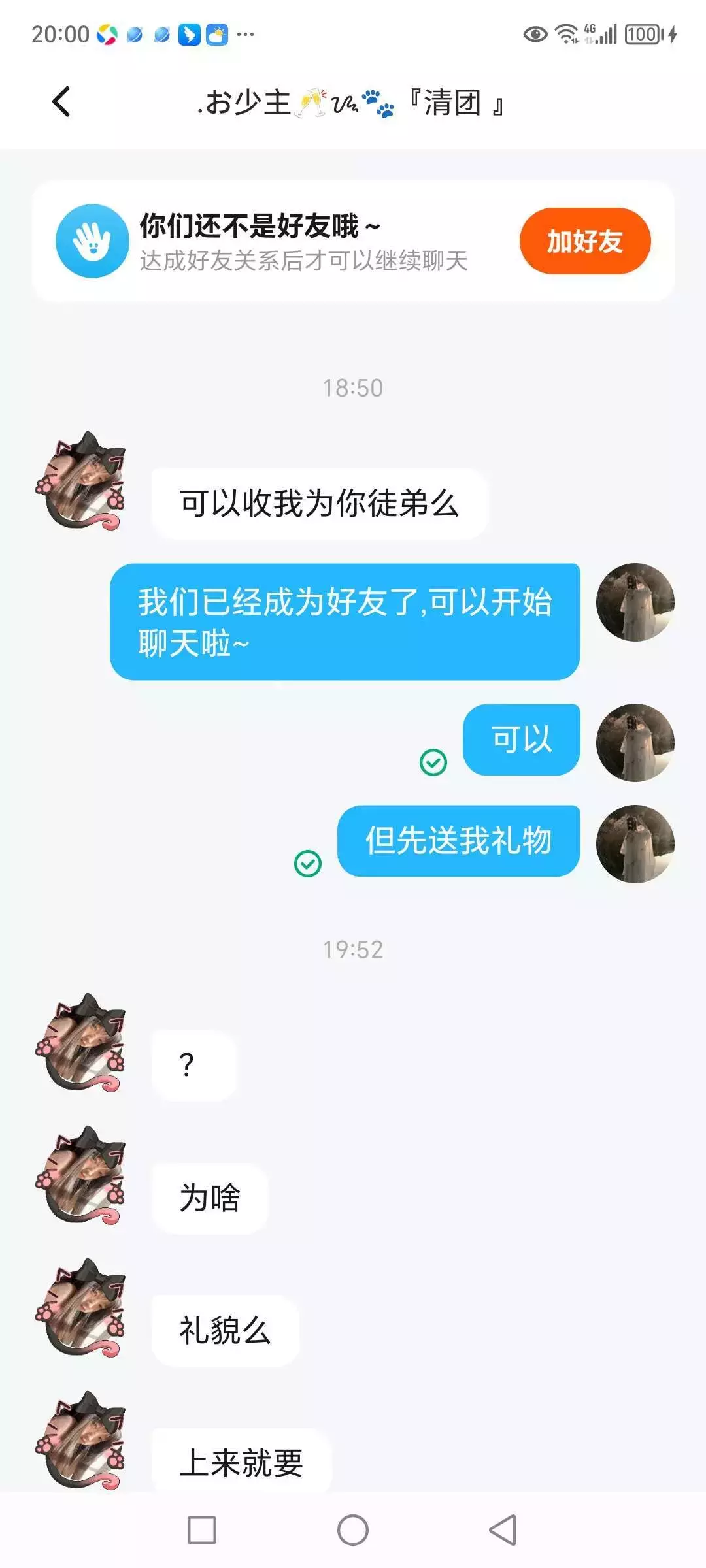 不是你什么意思,我名字是收徒先送礼,你是不是看不懂中国话,还是干啥,我恶心?你才恶心呢,你全家都恶心
