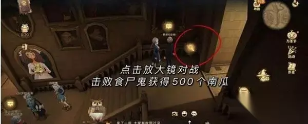 2、进入走廊之后,一直往里走,点击靠窗的第二个皮皮鬼即可获得300个南瓜。