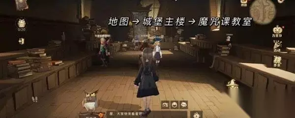 第二个彩蛋: 位置:魔咒课教室。 获取: 1、打开地图进入城堡主楼,点击进入魔咒课教室;