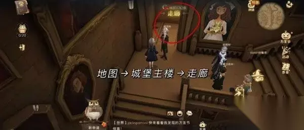 第五个彩蛋: 位置:走廊。 获取: 1、从进入城堡主楼一直往上走,到达走廊,点击进入;