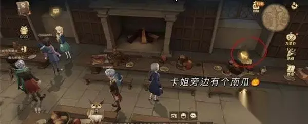 2、在卡珊旁边的桌子上有一个金色手的标志,点击它即可获得500个南瓜。