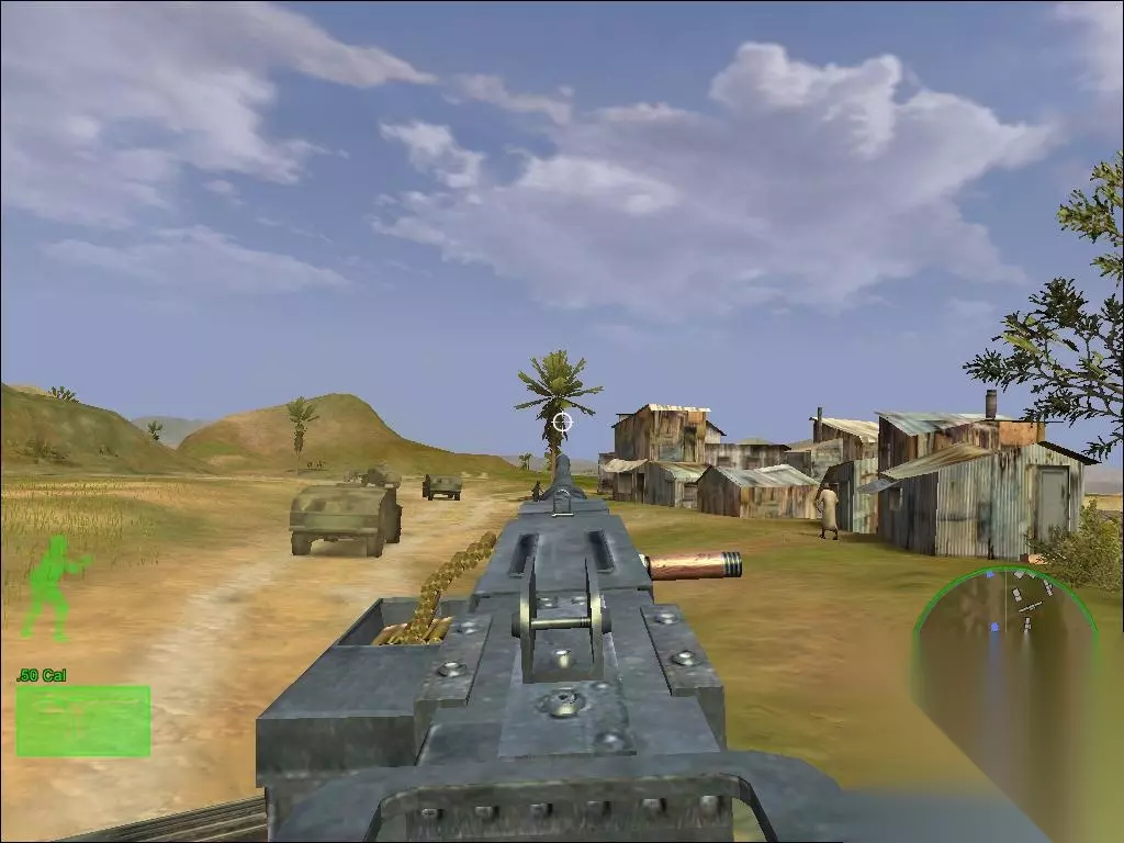 第四关相对来说任务也简单:跟随车队-穿越广场-抵达仓库 跟随车队:一路上火力尽管猛烈,但相对来说威胁不大,只需要按部就班用机枪扫射即可。 穿越广场:到了这里,火力虽然平静许多,但是要格外注意打冷枪的步兵时不时冒出来。 抵达仓库:到了仓库,先优先将仓库小屋内的敌人清理干净,然后藏身于此,采用趴姿来射击试图入侵仓库的敌人,因为如果你站身仓库内,身旁的侧门会时不时冒出几个步兵对玩家打冷枪,在那种火力特别猛烈的情况下很容易挂,所以藏身小屋是最为安全的做法。