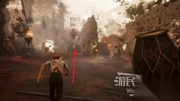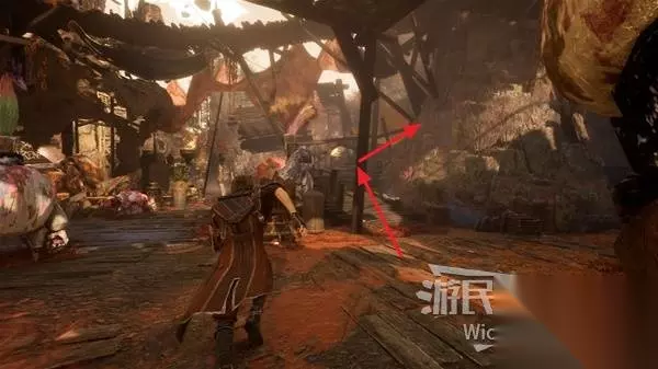 出来的时候,右拐沿着木桥往上走,中间的障碍物直接攻击破坏,尽头处可拾取不少源色。
